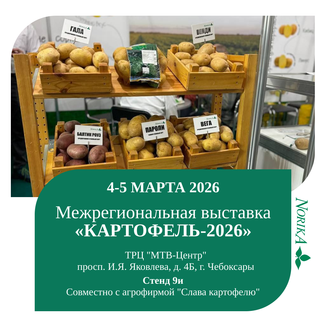 Мы принимаем участие в межрегиональной выставке «Картофель-2026», которая включена в перечень мероприятий Минсельхоза России.