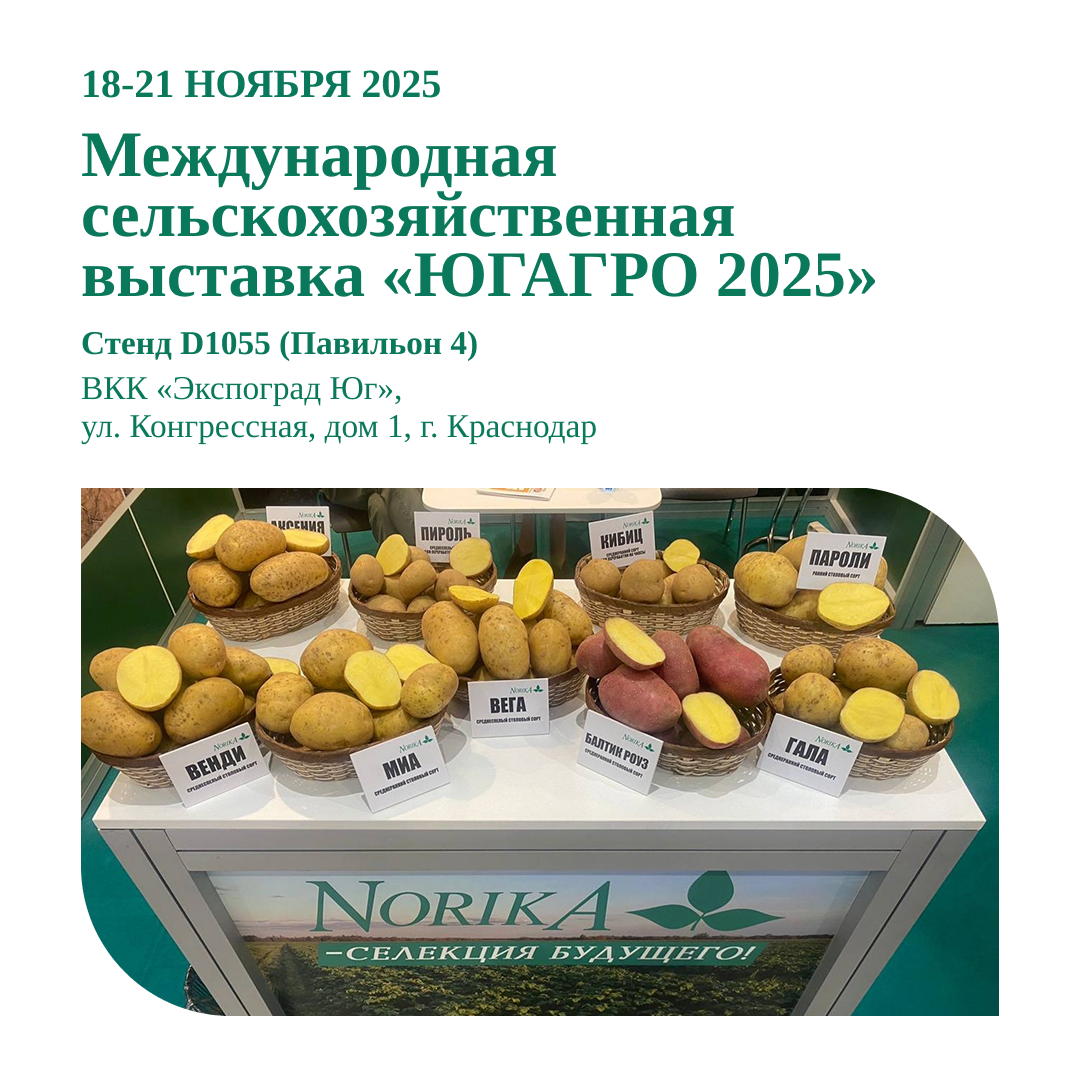 Приходите, чтобы обсудить сорта картофеля селекции Norika, особенности их выращивания и условия приобретения семенного материала.